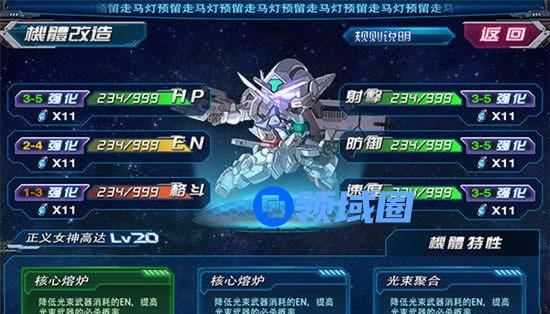 通过使用强化水晶对机体进行改造,每次改造消耗1个强化水晶,进化机体可以获得更多的属性上限。