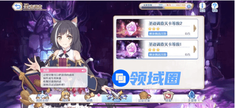 圣迹调查关卡每天有挑战次数的限制,挑战次数将于每天「05:00」时进行重置,本次将开放圣迹调查关卡等级1与圣迹调查关卡等级2两个难度的冒险。