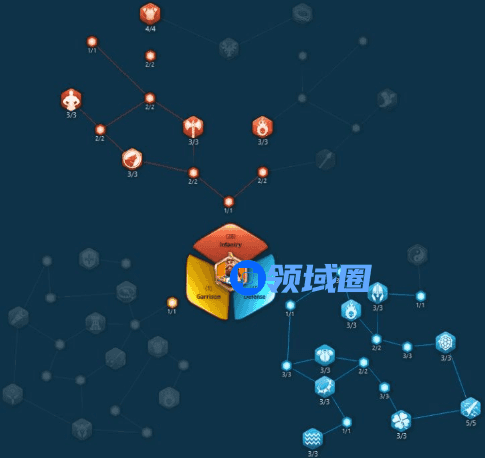 查理马特的天赋有三个,分别是步兵,防御和驻防。