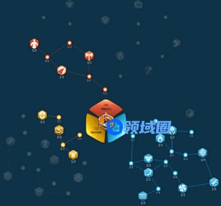 驻防更多时候并不是用于保护自己的城市,由于城市可以开保护盾获得无敌的效果,在游戏里,驻防更多的是用于守联盟的旗帜和要塞等。因此我们并不需要提高警戒塔的能力,也就不需要选择增加警戒塔属性的天赋。由于驻防时,我们很难控制联盟的成员是否会使用纯兵种驻防,所以步兵天赋反而作用不大,而防御天赋会更加有效的提升查理马特驻防的能力。