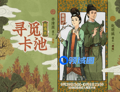 活动期间【李清照】、【赵明诚】概率UP,活动结束后新角色【赵明诚】将进入【精英】卡池。