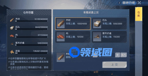 仓库募集,只需要木头/石头/草木纤维/肉。