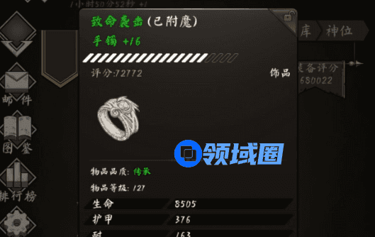 装备类型 物品等级 强化等级 护甲 控制恢复 回血