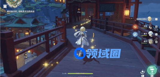 2、对话完继续跟着黄色印记走,前往新月轩,这条街尽头就是新月轩。从下图这个位置走,一直上四楼,即可探听消息。