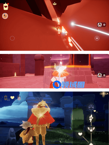 如图所示,玩家可以花费30个爱心,然后在这个叉手这个先祖这里,兑换黑脸面具,需要解锁这个路径才行,还可以得到这个深橘色的斗篷,全部解锁的话需要19个蜡烛、1个升华蜡烛,30个爱心,还是比较多的,不过颜值很高,值得玩家来进行兑换。