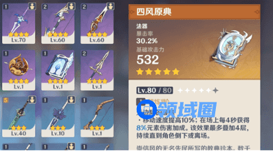 四风原典精炼一阶满效果为:10移动速度,32%元素伤害加成。