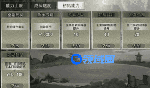 (4)初始主城好感 (要么不点,要点就点满,根据成就点情况,点满方便买东西,不点方便刷仁义值)