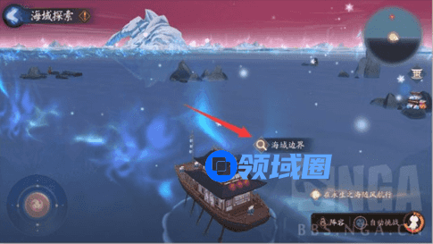1.进去以后,初始是“静谧之海”,请开船沿着海边界走,直到看到带有放大镜图标的“海域边界”