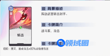 最基础的斩击卡,斩击词汇(可以受到斩击精通加成)。伤害倍率低且不可强化,但是0费和湮灭是两条强者词汇,用来压缩卡组非常合适,是战斗牌当中少有的功能牌(压缩卡组效果非常强力)。综合评级5星(满5星)