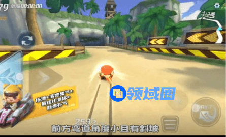 这里有小斜坡,赛车漂移会腾空落地时再同向漂移,配合长拖漂+双甩快速通过U型弯道。