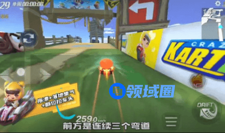 前方是连续三个弯道,第一个弯道这里有跳台需要提前漂移,落地时同向漂移。过弯后立刻反方向漂移,通过第二个弯道的近道,过弯后轻点左右方向键调整车头方向,第三个弯道这里使用拖漂配合断位拉车头技巧。
