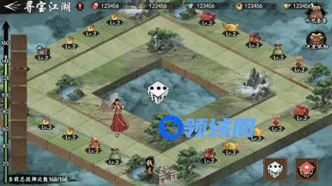 江湖版大富翁回归!可通过摇筛子前进,每个格子都有一个奖励。地图第24个格子为钱庄,到达此处可投资元宝。使下次再到达时活动百分比返利投资时候的元宝,掷一枚筛子获得1积分,积分累计可在积分商城兑换对应奖励!