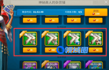 神秘商人那里购买道具,即可随机增加同一类型中一个未购买道具10%的折扣。最多累计90%。