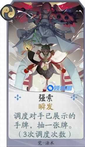强索作为觉得二勾玉法术牌,调度敌方已经展示的手牌,调度就是我们游戏开始进行的操作,我们通常调度自己的牌都是把有效,前期能用,或者关键卡调度到手中,而调度对方的我们就要反其道而行这,把对方十分关键的卡牌全部替换下,可以打乱敌方的节奏,况且我们这张瞬发法术是瞬发牌,使用过后还会抽一张牌,更符合我们这套卡组的思路。