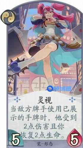 灵视作为觉得2勾玉形态牌,虽然有着5点力量,5点生命值这种还算不错的身材,但是尽可能的也要让灵视少参与到战斗区的交战,因为我们的灵视效果如果觉被击杀了就不会触发,虽然说对方被看牌,使用被看到的卡牌一开始不会有什么影响,但是随着灵视的效果,量变产生质变,尤其是灵视还可以回复我们自己牌手的生命值,在应对一些抢血或者压制血线的卡组也有效果。