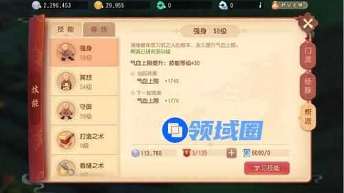 其实,大多数帮贡都用在学习帮派技能上,强身、冥想和守御等等,这些技能对应的效果分别是效果分别是血量、蓝量、物防法防。