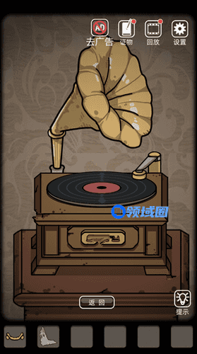 2.留声机下面的柜子打开,得到唱片,将唱片放在留声机上,听一会儿会得到报纸碎片