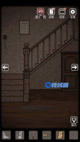 6.打开电视机场景的第一个柜子获得带血的刀,回到楼梯场景用刀划开绳子,捡起符纸,打开大厅的灯,拿到鸡尾酒的配方