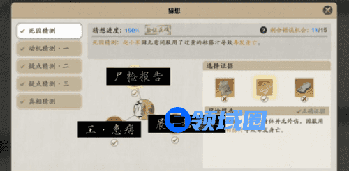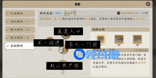 后面的推理阶段依次是:动机猜测一、真相猜测、疑点猜测三,对应选项顺序就是213了。