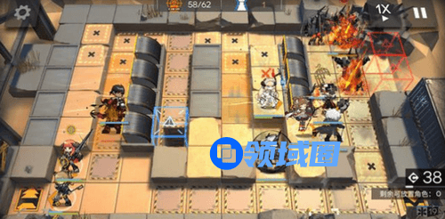 等42姐cost好了以后直接空投冲下方攻击,然后钙质化+圣域+火山+黄昏,所有敌人在这里全部搞定。