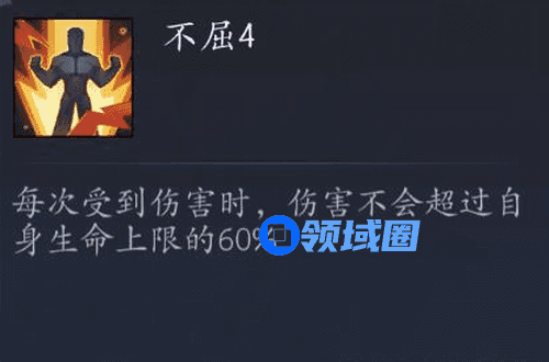 不屈:每次收到伤害时,最高伤害不会超过自身生命上限的60%
