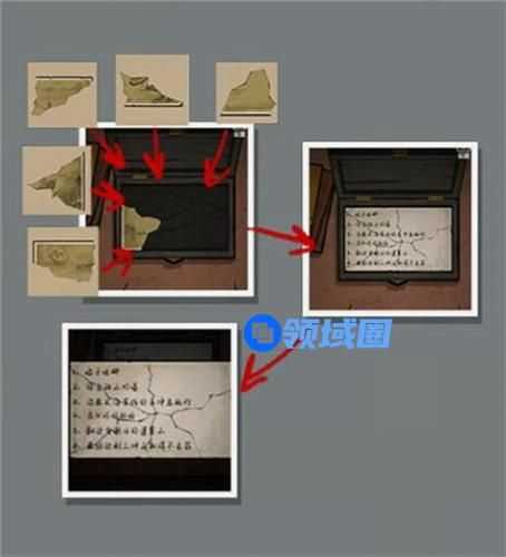 4、将所有的明信片放到桌上的盒子里,合成一张完整的明信片,获得地图线路线索。