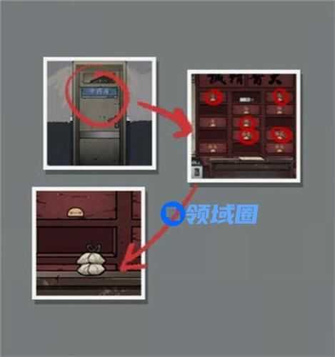 9、打开中药室的门,根据卡片提示,挑选5种对应的药物打包好后拾取。