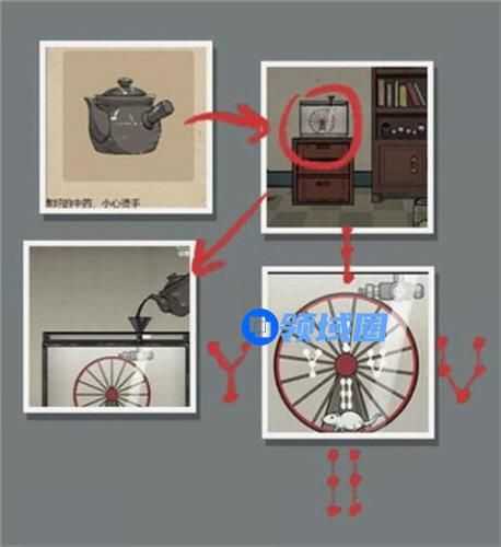 13、拾取煮好的药,拿到二楼办公室给小白鼠饮用,得知木轮上的线索。