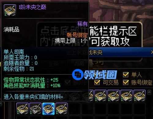 - 入场需要有专用入场道具【司南】,可以在NPC云珂处购买1阶司南,在未央幻境地下城中有概率掉落更高阶的【司南】