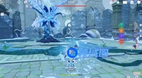 门打开之后,等待旅行者的是【急冻树】BOSS,这个怪物的挑战难度比较低,推荐使用丽莎持续输出,因为雷元素可以和冰元素发生超导反应,虽然产生的冰元素范围攻击会被免疫,但是可以降低其30%的防御力。