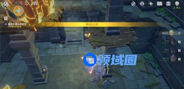 这里的挑战是60秒内拿到晶体,需要带岩主铺路(岩元素主角,需要用主角交互璃月的七天神像与岩元素共鸣,这里提醒一下,免得有人不知道,如果你有别的可位移角色也行,但推荐还是用主角)