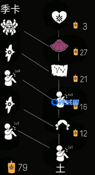 如果想要完成土之先祖的全部兑换,总计需要的蜡烛数量为12+16+21+27+3=79根。