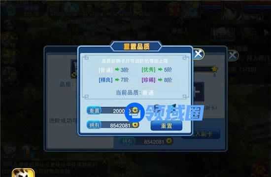 进阶之前先注意变身卡的品质,品质越高,可进阶等级越高。品质共有4种,普通、优秀、精良和珍稀,如果想进行高阶的进阶可以先重置一下变身卡的品质。使用进阶石可以直接将品质改为珍稀。