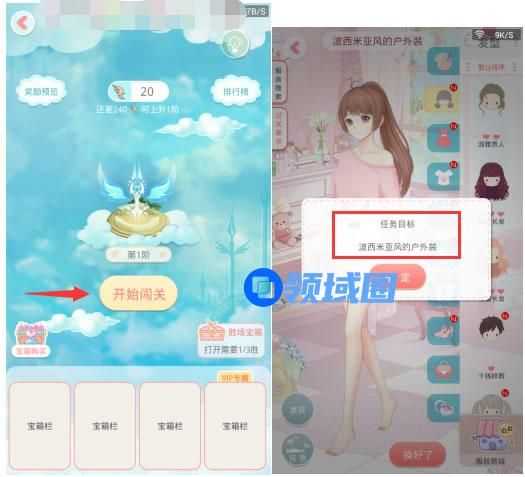 点击开始闯关,会得到一个搭配的任务目标,穿上符合目标的服装,获得3星及以上评价,则闯关成功。