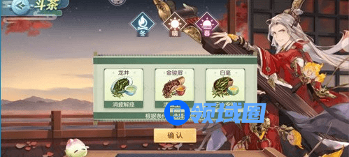 通过判断“季节”、“天气”、“昼夜”等条件因素选择合适的茶品,并通过控制“泡茶时间”力求为随机武将呈上浓淡相宜的茶品,即可获取评分对应的活动货币「茶晶」与元宝奖励!