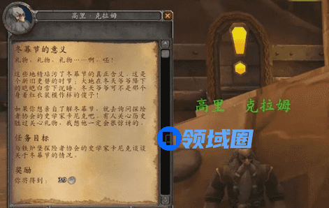 玩家可以在主城接到关于冬幕节的任务,通过交付相应的物品可以获得一些礼物,礼物里面有着材料、食物或者是宠物等一些小东西。也可以通过节日礼物获得一些提高属性的恢复糖果。任务都很简单,联盟部落的任务都一样。