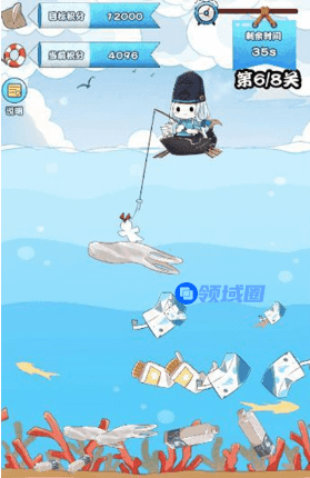 这个小游戏的操作很简单,就是点击小纸人(鱼钩)去钓海底的垃圾,每一种垃圾都有相应的分数,塑料垃圾袋的分数最高,还有连续钓到垃圾的话,也会有分数加成,每达到一定分数就能通关并进入下一关。这里需要注意的是,每一关都会有一个福袋,一般都在最底层,需要把上面的垃圾都钓完了才能钓到福袋,如果分数达标的话,就没有钓福袋的机会了,所以需要看着分数来钓。