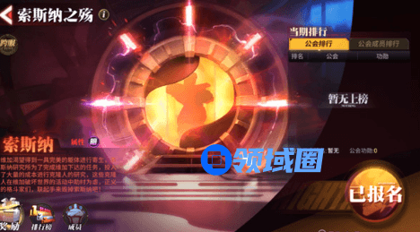 索斯纳之殇在每周五至周日晚8点开启,以公会为单位进行,需要公会成员提前进行报名才可参与,报名截止时间为当天19:55。进入索斯纳之殇玩法后,会先开启左右两侧的门,格斗家可以根据属性进入其中一扇门挑战赛斯13号或赛斯14号,战胜后掉落宝箱。时间到达晚上8点30时,中间的门会打开,格斗家可以进入挑战BOSS维加,战胜后掉落宝箱。