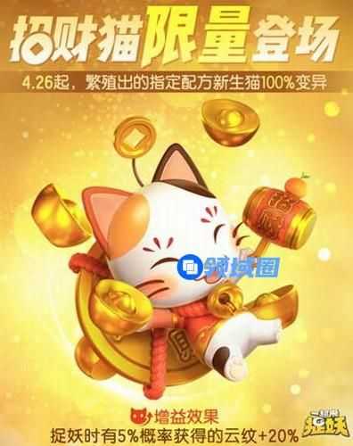 “八方招财”的特殊能力:捉妖时,有5%的概率获得的云纹+20%!