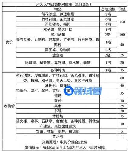 有江湖消息称,严大人在多年的买卖生涯中,形成了自己独有的一套价值交换体系。(以告示牌为例,在严大人的眼中,价值为1,玲珑棋局价值为150,虽然严大人对于告示牌很是不屑,但如果我们凑够150个告示牌也不是不能商量的)具体见下图。