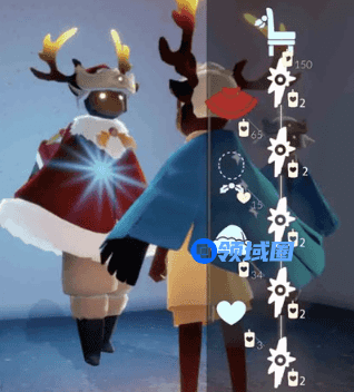 玩家可以向这个先祖来进行兑换东西,这个先祖的名字叫做宴会节员工,玩家可以使用34个蜡烛,然后兑换一个圣诞帽子,还可以使用15个蜡烛,兑换一个蝴蝶结,而且还可以使用65个蜡烛兑换一个红色的圣诞皮肤,最后还可以使用150个蜡烛,兑换一个圣诞椅子。