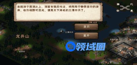 之后玩家可以通过杭州城找到店小二可以打听到杭州十景,通过西湖十景和上面的线索对应就可以知道分别指的是:曲院听荷,三潭印月,宝石流霞,断桥残雪,雷峰夕照,苏堤春晓。