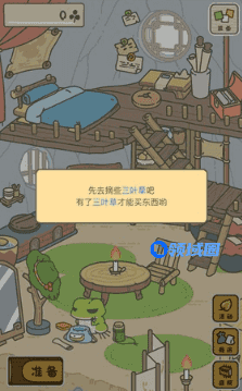 然后我们点击右下角的“小屋”返回房间里,在房间里点击左下角的“准备”按钮,开始为青蛙准备旅行的行李。