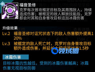 克罗赛尔的每次普攻都会框定目标及其周边敌人,被框定的敌人释放技能时,克罗会同时对释放技能的敌人和普攻目标造成伤害;为了最大化该效果,克罗布阵时对位的敌人身边最后有更多其它敌人。因为触发主要基于敌人释放技能,克罗该被动效果在敌人普遍大招频率较高的冒险和雨夜玩法中非常强力。值得注意的是,触发的冰霜伤害无视目标防御效果,对高防敌人时效果拔群。被动升级后,触发的伤害对被诅咒的目标伤害极大提高,进一步强化克罗的定向击杀能力。被动提升到满级后,框定区域内的敌人死亡时,都会对主目标追加额外伤害,并延长大招诅咒时间;延长诅咒时间后,配合大招满级效果,能更容易让诅咒持续处在叠满伤害的状态下。