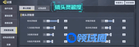 镜头灵敏度:是指不开镜时镜头的转动速度,在训练场练习的时候将镜头从左往右滑,能够一次转动120度到180度即可,以下是我的镜头调灵敏度: