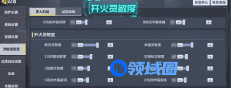 开火灵敏度:开镜瞄准下镜头的转动速度,练习的时候瞄准一个移动靶,能平稳地跟上目标即可,跟不上就调高灵敏度,每次在5-10数值之间调节,以下是我的开火调灵敏度: