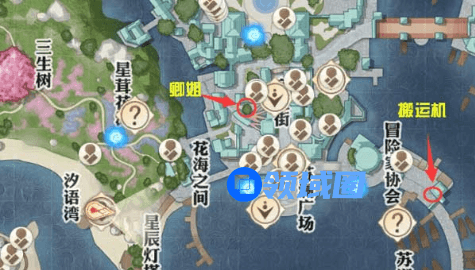 在苏澜城里一堆大人处(691.451)接任务,然后去汐语湾的沙滩上(365.315),可以在地上捡到手帕,然后去花海草丛这里找到小女孩(370.388)对话,之后分别找四个位置的NPC对话:健谈的小工(620.426)、奸诈的衣商(639.399)、腹痛的食客(621.331)、最后到码头对话疲惫的工人(788.297)获得线索,然后任务寻路去组织他们(539.213),即可。获得藏品可爱的手帕。
