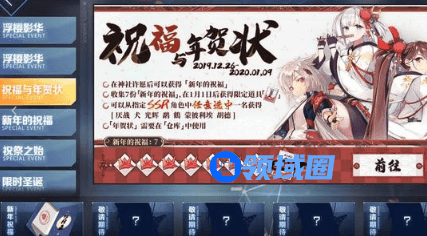 「敲钟祈福」中敲钟,每日可获得一份「新年的祝福」,1月4日后,拥有7个「新年的祝福」的情况下,可以获得限定道具「年贺状」