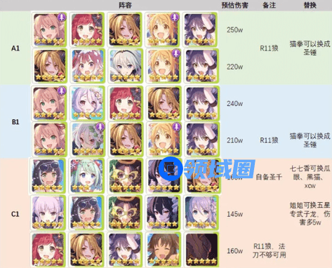 A面只有200物防,基本就是个木桩,不过伤害略高,不带奶需要R11狼才能T住。上面两个阵容一个是利用环奈加速破甲覆盖,一个是用水猫抽蓝让boss少放一次大招(boss大招后物防会提升20%,即变为240)