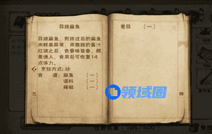 蒜烧扁鱼,煎炸过后的扁鱼肉鲜美异常,用微甜的酱汁红烧之后,色香味皆备,颇是诱人,食用后可恢复14点体力。
